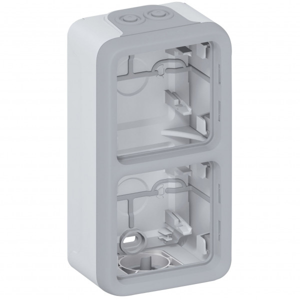 Boîtier Plexo 2 postes vertical - pour montage en saillie - gris