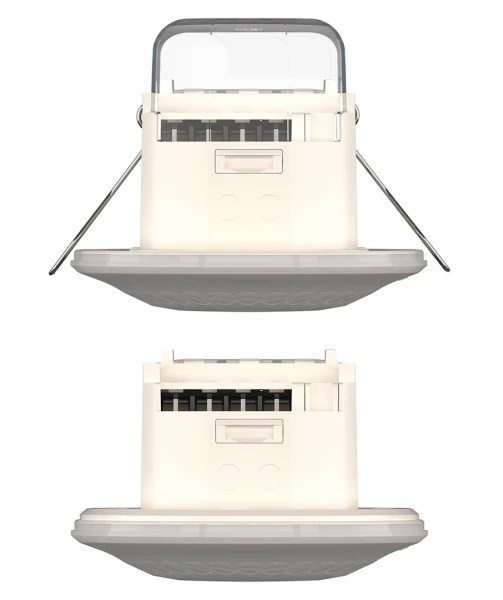 L’avantage d’une installation du détecteur de mouvement ou de présence au plafond, est de balayer 360° de la zone considérée. Schneider Electric propose le sien pour les faux-plafonds. Celui de Perry Electric est à infrarouge, alors que la matériel de Steinel pourrait ressembler à un détecteur de fumée, comme un modèle de la marque Grasslin.