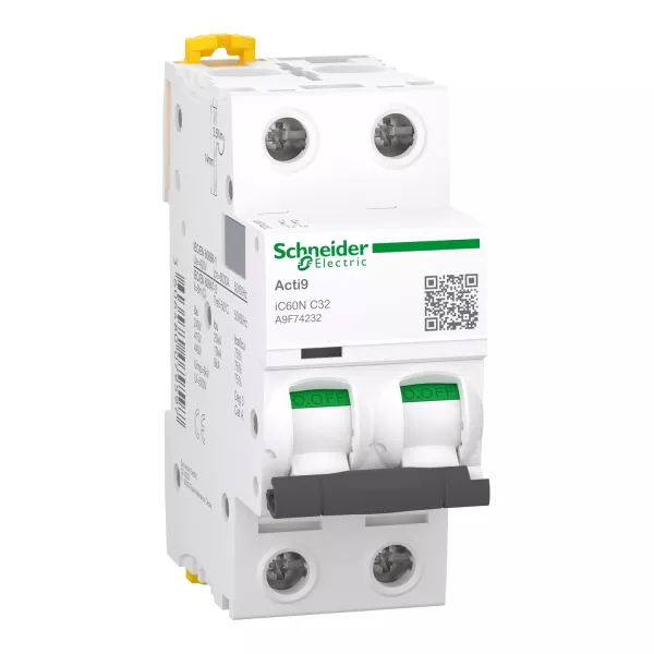 Disjoncteur 2P 32A Courbe C – Schneider Acti9 iC60N 400VCA, 6000A (10kA)