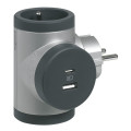 Legrand - Fiche multiprise rotative 2x 2 Pôles + Terre latérales 16A 3680W avec USB Type-A et Type-C - alu et gris foncé