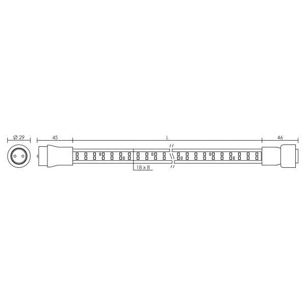 Ruban LED protégé pour utilisation intérieur ou Extérieure, IP65 IK08 230V, 180 LED/m 36W 3000K 2280 lumens, longueur 3m, livré en rouleau. Cordon d'Alimentation non fourni, à commander séparément - voir code 55264.Caractéristiques techniques