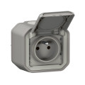 Prise de courant avec terre étanche avec volet Plexo 16A 250V complète livrée avec boîtier saillie pour montage en apparent - grisCaractéristiques techniques
