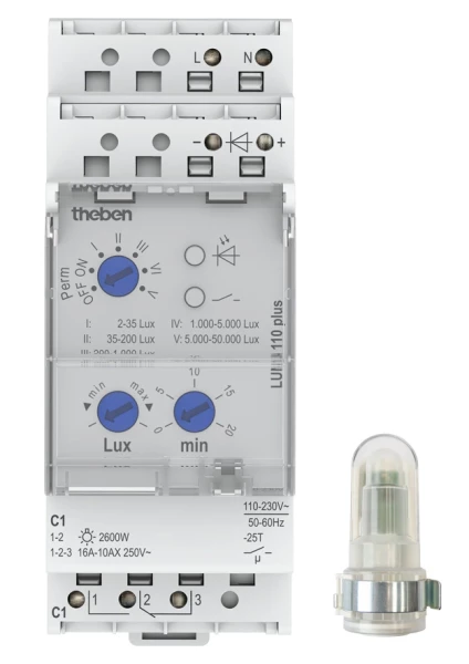 Interrupteur crépusculaire digital 1 a 100000 lux duofix cellule saillie 2xinv. 16 a